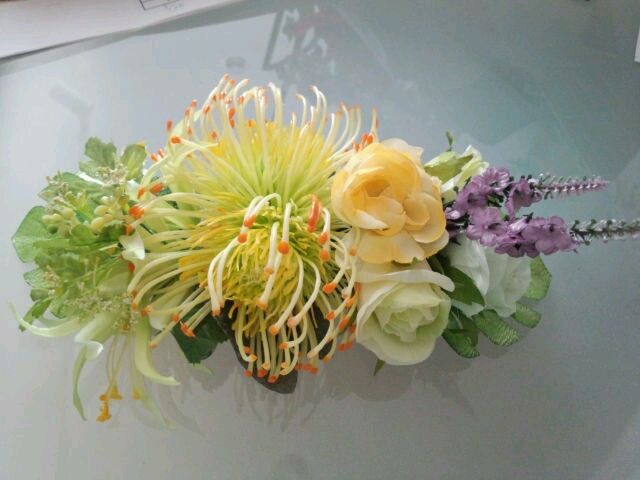 酋長、お花屋さんになりヘアクリップを