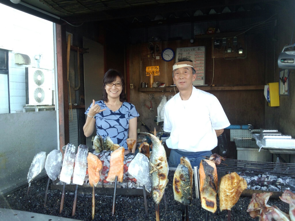 道端で焼き魚を焼いてます!