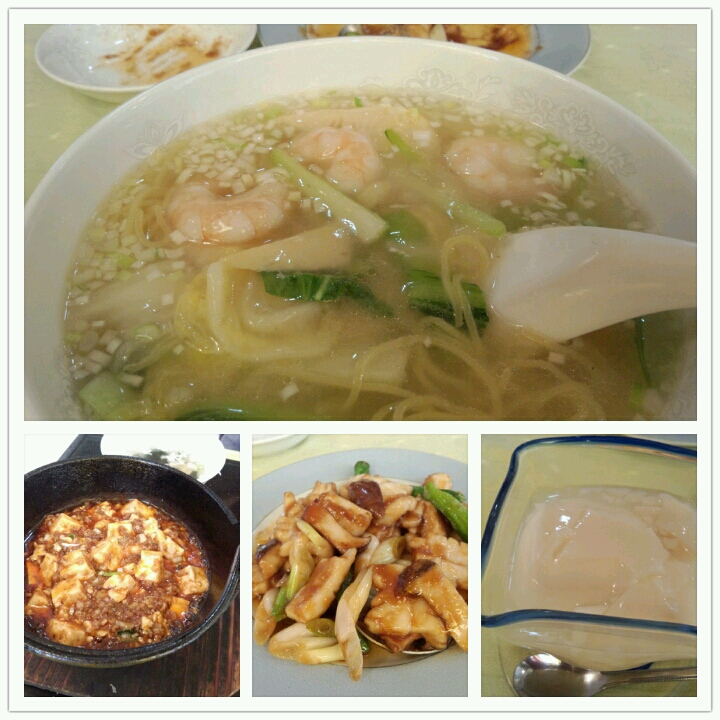 今日は、マーボー豆腐とエビそば、花イカのネギ炒めと杏仁豆腐を頂きました(*^o^*)