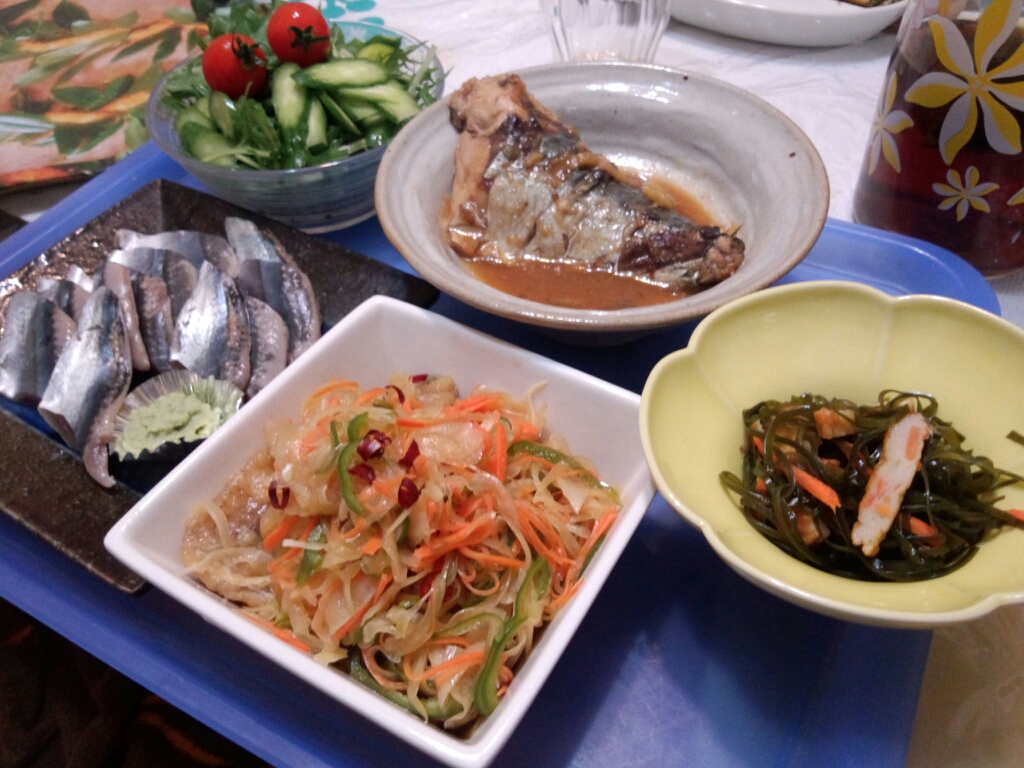 本日はサンマの刺身、アジの南蛮漬け