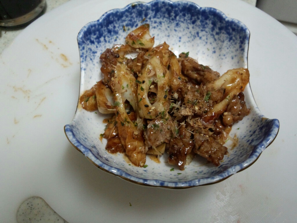 豚肉とちくわのソース炒め。