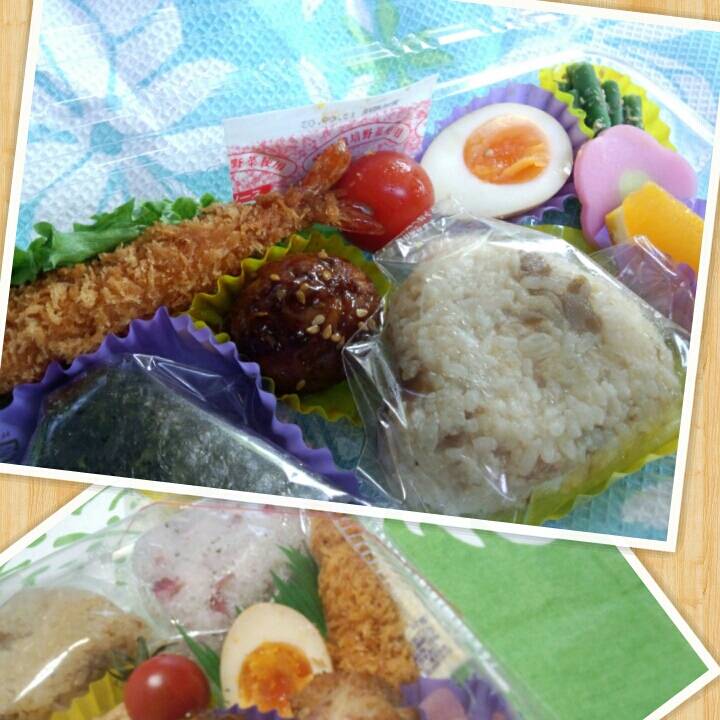 エビフライ、煮卵、肉団子などのおかず