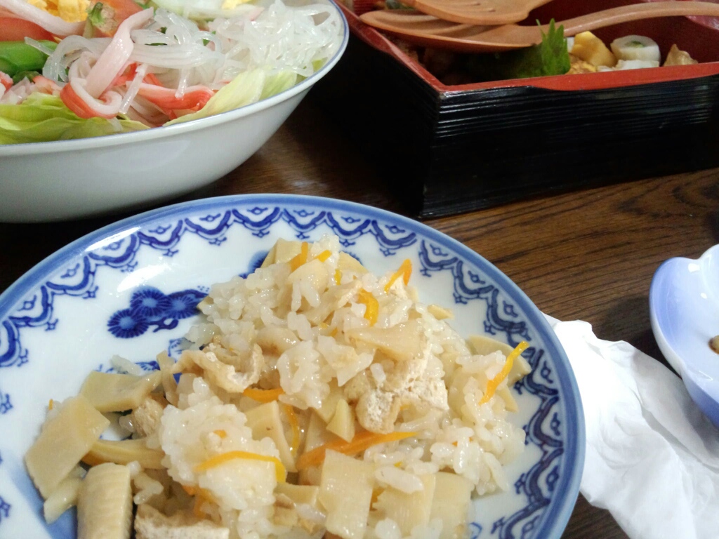 母に得意のタケノコご飯を作って